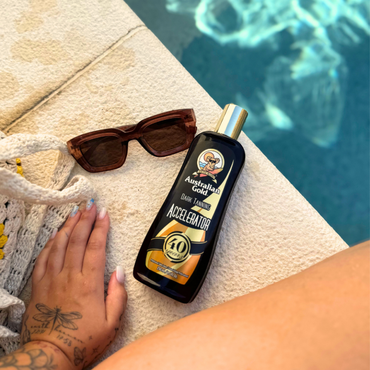 Vier 40 jaar Australian Gold met deze limited edition Dark Tanning Accelerator Premium. Een luxe zonnebankcrème die zorgt voor een diepe, natuurlijke bruining en tegelijkertijd je huid verzorgt en beschermt.