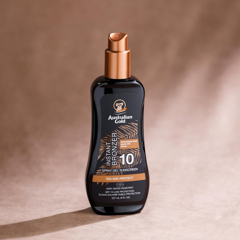 Australian Gold SPF 10 Spray Gel met Bronzer: krachtige bescherming en een directe, natuurlijke gloed